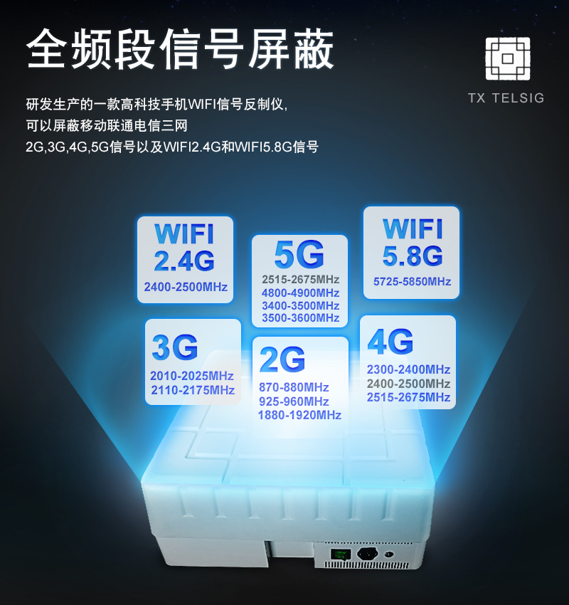 手机WIFI信号大功率信号屏蔽器 高增益天线 全频段屏蔽
