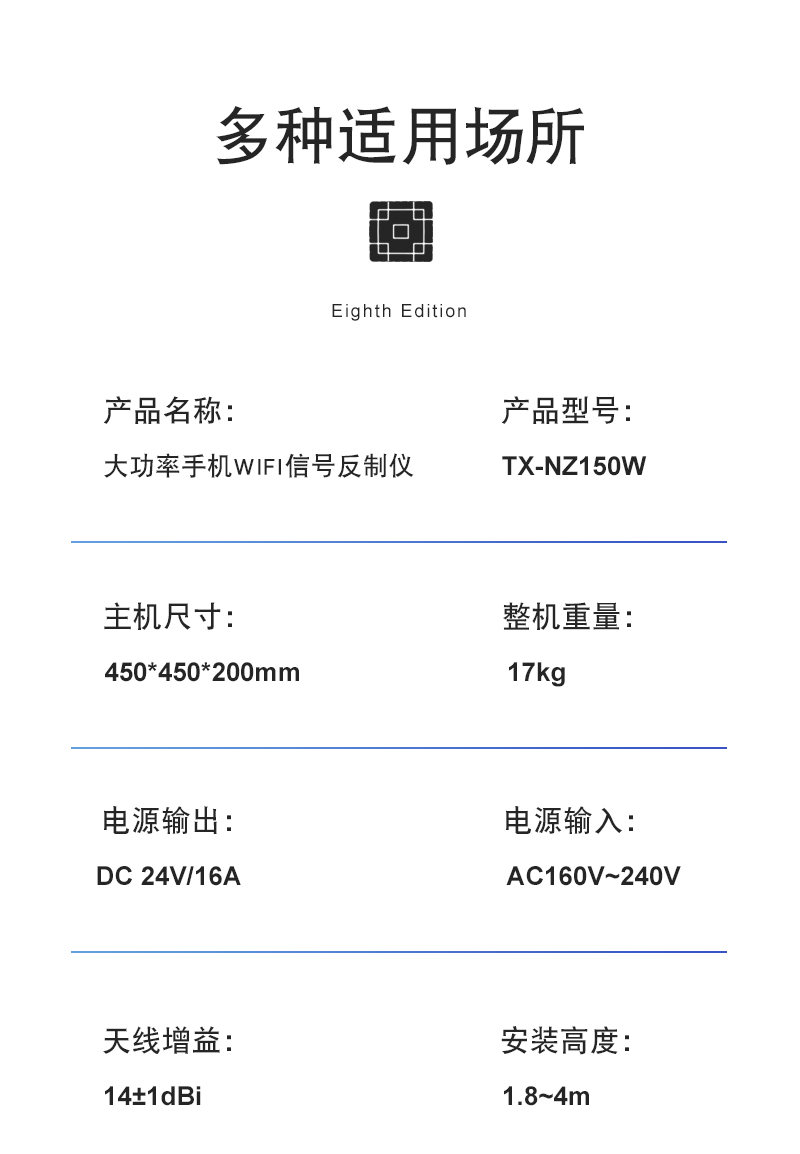 大功率手机WIFI手机信号屏蔽器 反制5G4G3G等信号设备仪器
