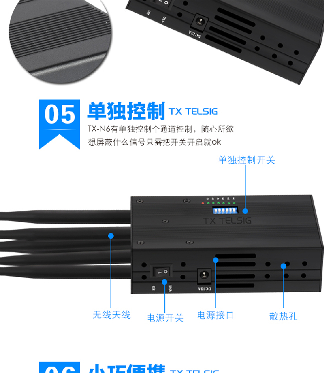 特信TX-S6手持式手机信号屏蔽器GPS信号干扰器(2G/3G/4G全频段手机信号屏蔽),因其携带方便、运用灵活、内置大容量蓄电池,特别适合应用于:公安、警察、拆弹小队、重要任务保护、特警 (S.W.A.T) 、军事安全部队、炸弹队、反恐单位、禁毒单位、边境控制单位、检查站人员等。