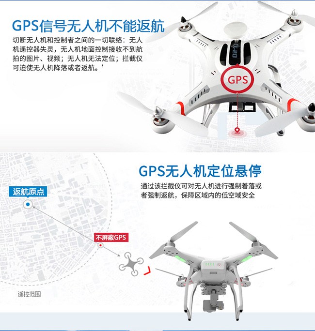3、无人机无法定位;拦截仪可迫使无人机降落或者返航。