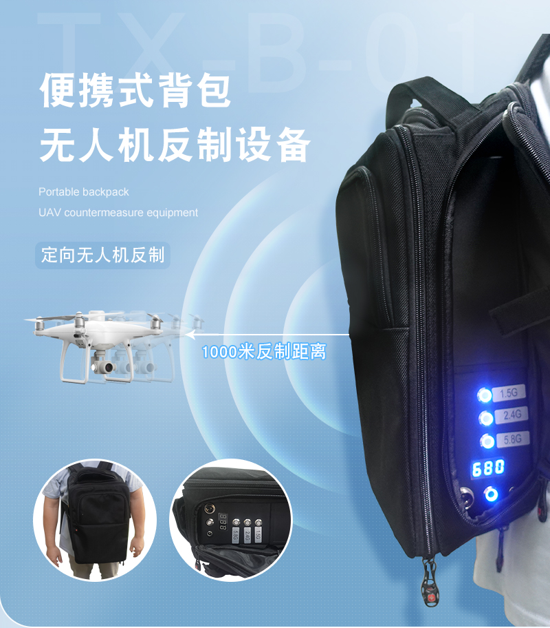 TX-BF01背负式无人机反制设备干扰驱离多频段迫降返航设备