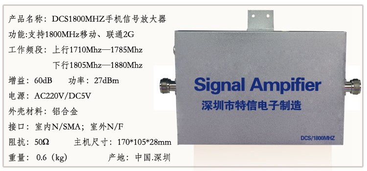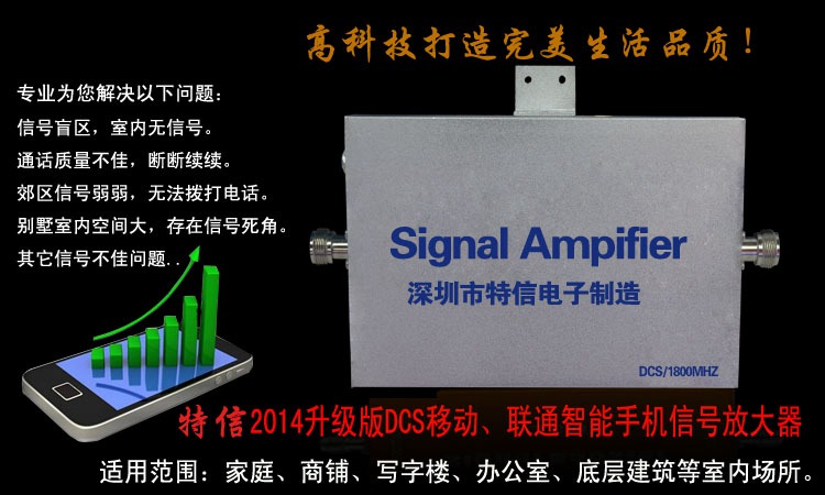 DCS1800mhz移动联通手机信号放大器,它的特点是高增益,性能稳定,适合600㎡左右的居室(办公室)车库!全套配齐!全网最低价!还可以在线指导,包教包会!无效包退换!支付宝担保付款让您购物零风险!