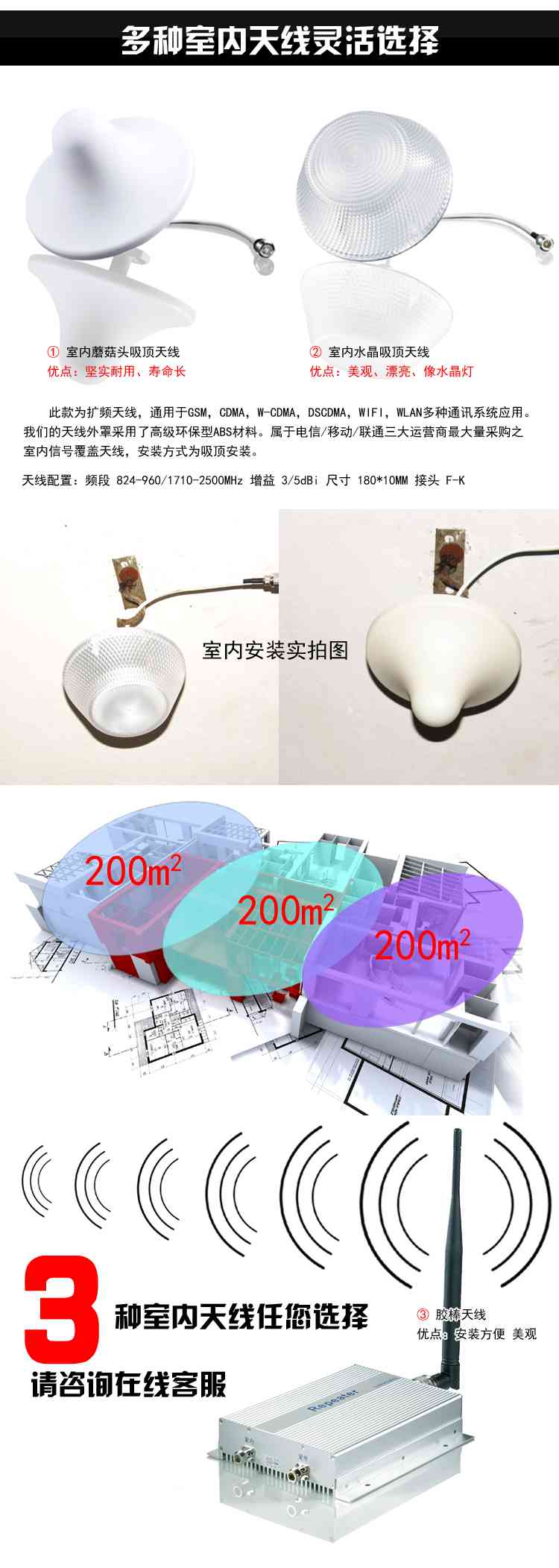 信号覆盖面积:覆盖面积1000-2000平方米/Repeater