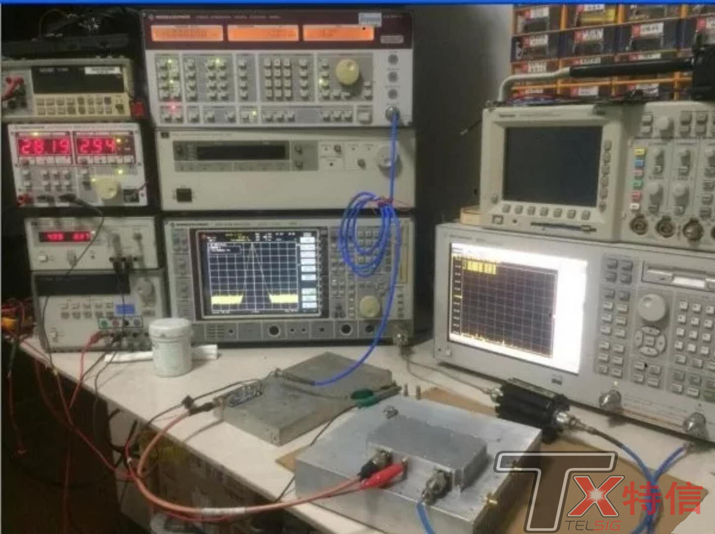 特信射频功放,自带扫频干扰源,扫频周期1Mhz,5800MHZ中心频率,带宽可通相应过电位器来调节频率5725-5850 可以定制频率和功率,C 波段5.8G 1W 2W 4W 5W 10W 20W 50W功放模块 WIFI 5.8G无人机 大功率功放模块.